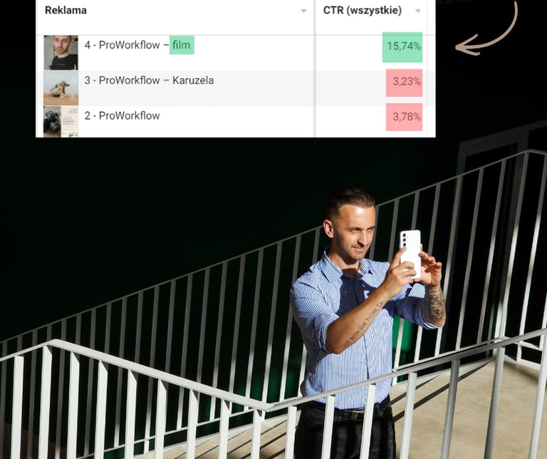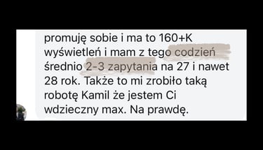Twoja wiedza buduje zaufanie, a Video jest skuteczną dźwignią zasięgów w social media. Testy A/B pokazały mi, że zaangażowanie i kliknięcia [CTR] potrafią być wyższe od zwykłych grafik - szczególnie w reklamach (Meta i Google Ads).